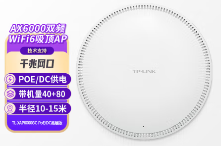 普聯(lián)(TP-LINK)2.5G口AX6000雙頻WiFi6無線吸頂式AP面板路由器全屋wifi接入點TL-XAP6000GC-PoE/DC易展版