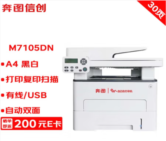 奔圖打印機(jī) M7105DN A4黑白激光多功能一體機(jī) 打印/復(fù)印/掃描 自動(dòng)雙面 USB/有線打印 30ppm