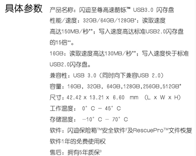 參數(shù) [品牌] 閃迪 [型號(hào)] 32GB USB3.0 U盤 CZ73酷鑠
