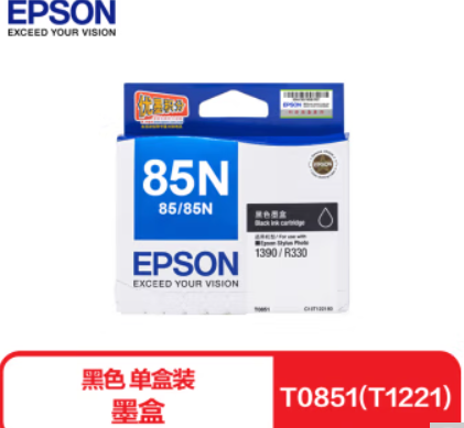 愛普生T0851(T1221) 原裝墨盒黑色單盒裝(適用PHOTO 1390 R330)