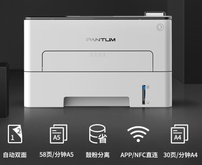 參數(shù) [品牌] 奔圖 [型號] 奔圖(PANTUM)P3060DW 黑白激光打印機辦公商用 自動雙面打印 無線WiFi連接 高速打印30頁/分鐘